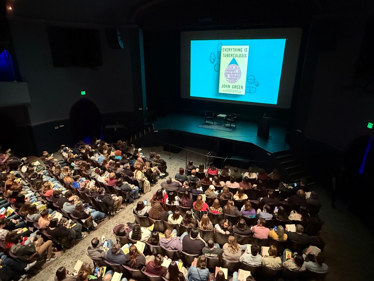 From the Everything is Tuberculosis book tour event in Iowa City with John Green and Kaveh Akbar.